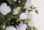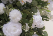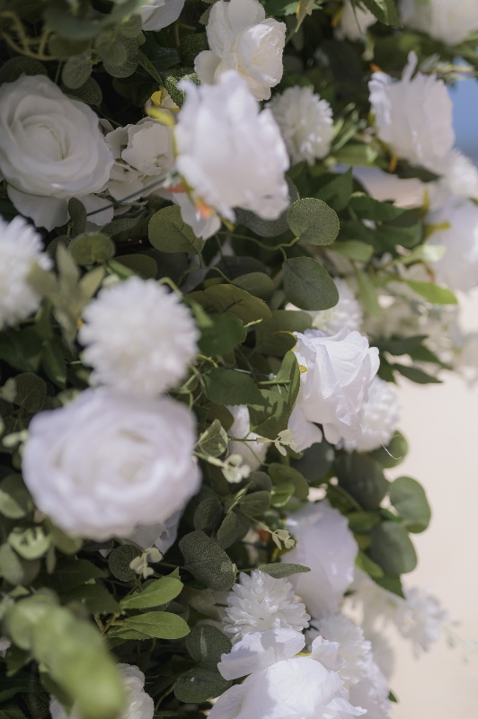- Классические белые арки: Вневременная элегантность — белые арки из шелковых цветов создают романтичную и спокойную атмосферу. Они доступны в разных стилях — от минималистичных до эффектных, с пышным декором. Можно дополнить композиции зеленью для придания глубины.
