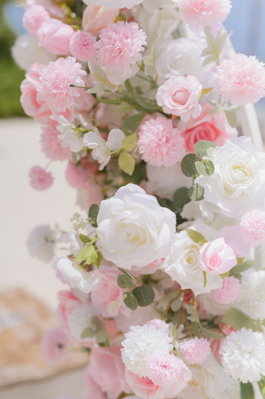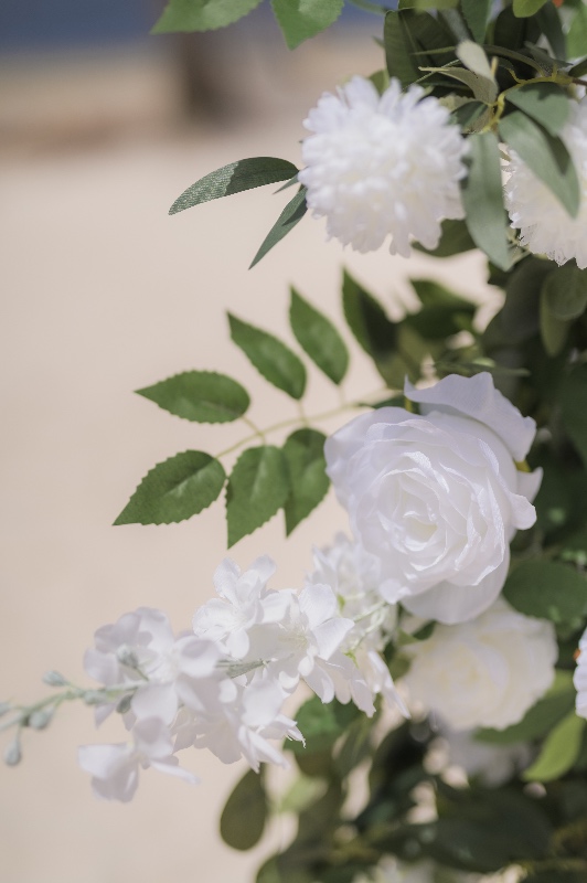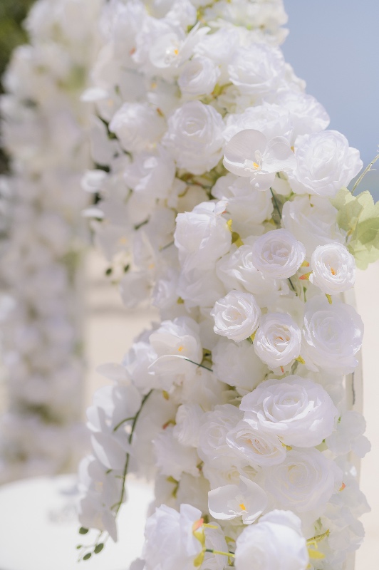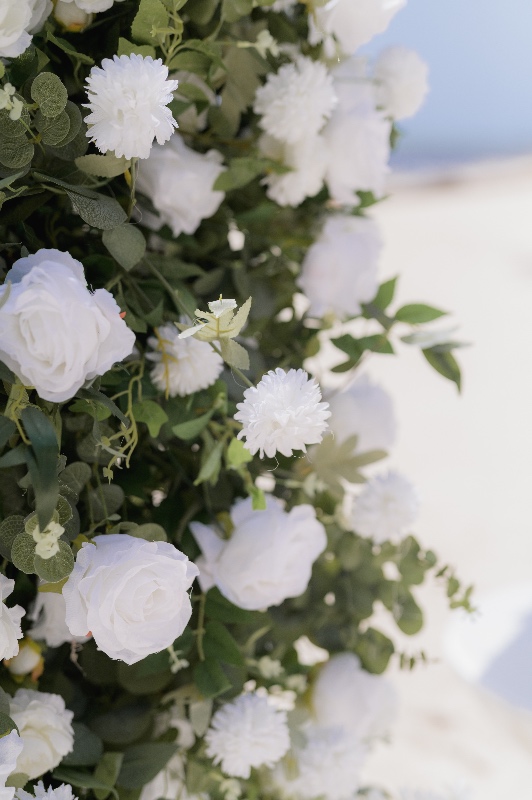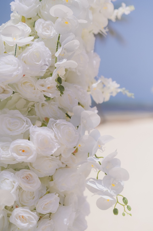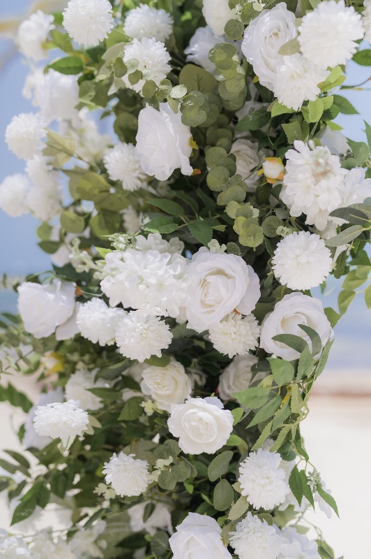 - Долговечность: Шелковые цветы прекрасно выдерживают тропический климат. Они не увядают на жаре и не выгорают на солнце. Поэтому ваша арка будет выглядеть идеально от начала церемонии до самого конца торжества.