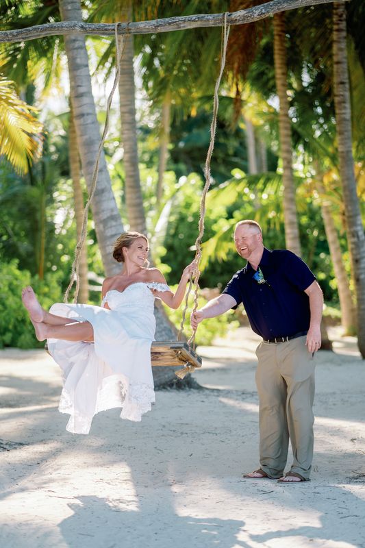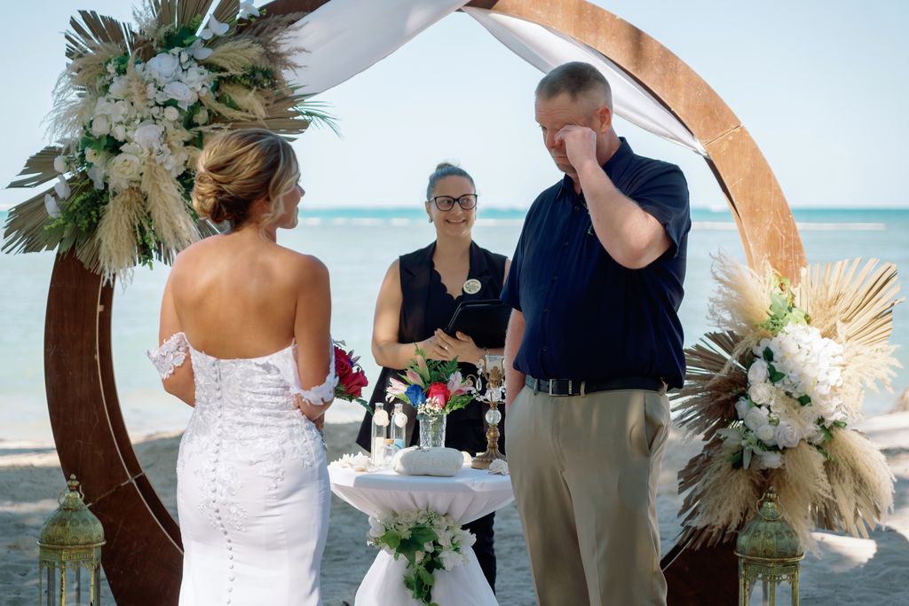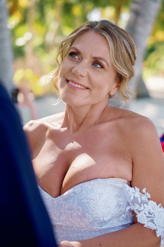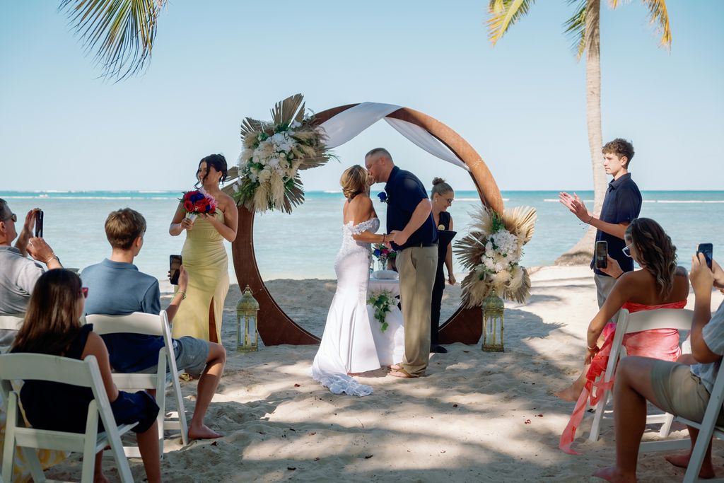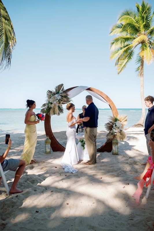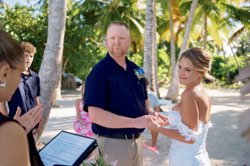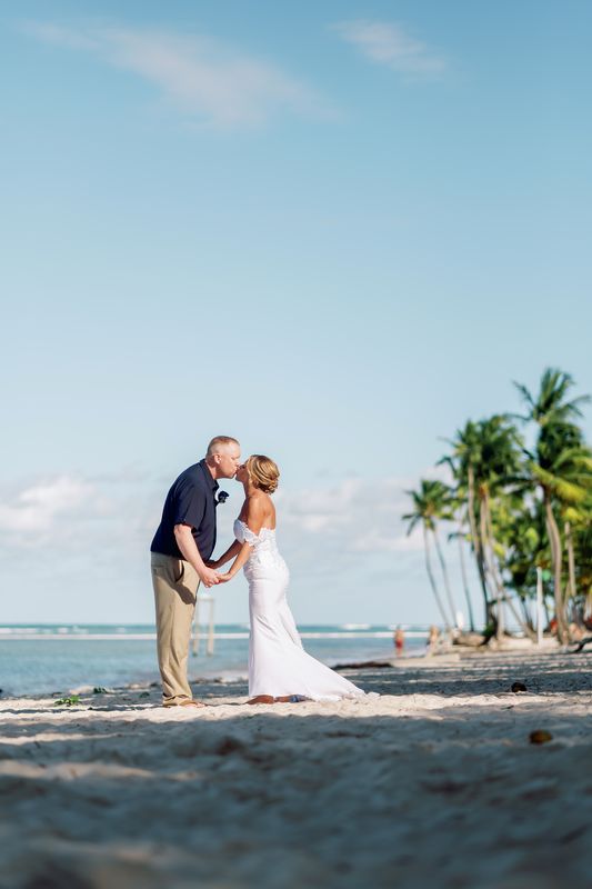 Церемония прошла на уединённом тропическом пляже. Высокие пальмы, мягкий белый песок и лазурное Карибское море создали по-настоящему сказочную атмосферу. Благодаря этому день получился спокойным, тёплым и наполненным искренними эмоциями.