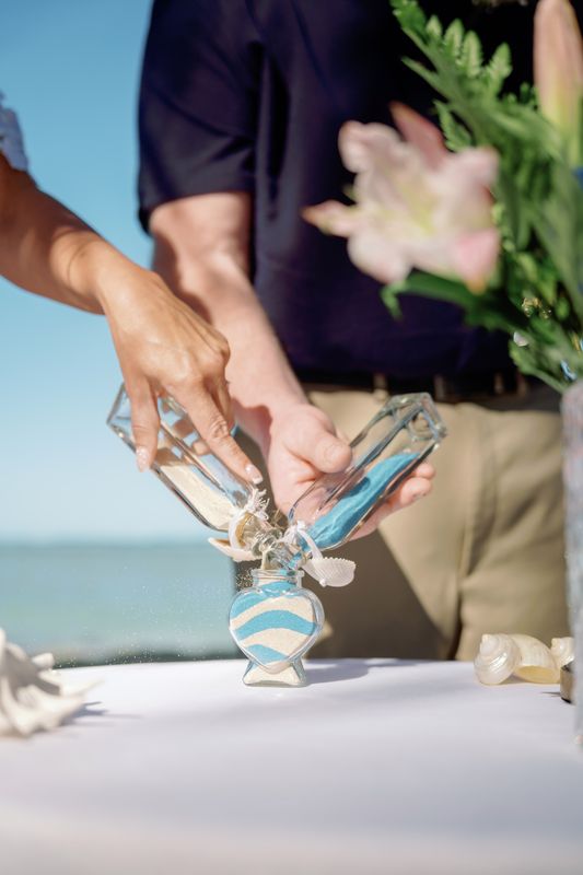 Особое значение имела песочная церемония. Этот символичный ритуал олицетворяет объединение двух жизней в одну. Кроме того, он добавил глубину и индивидуальность свадебному сценарию.