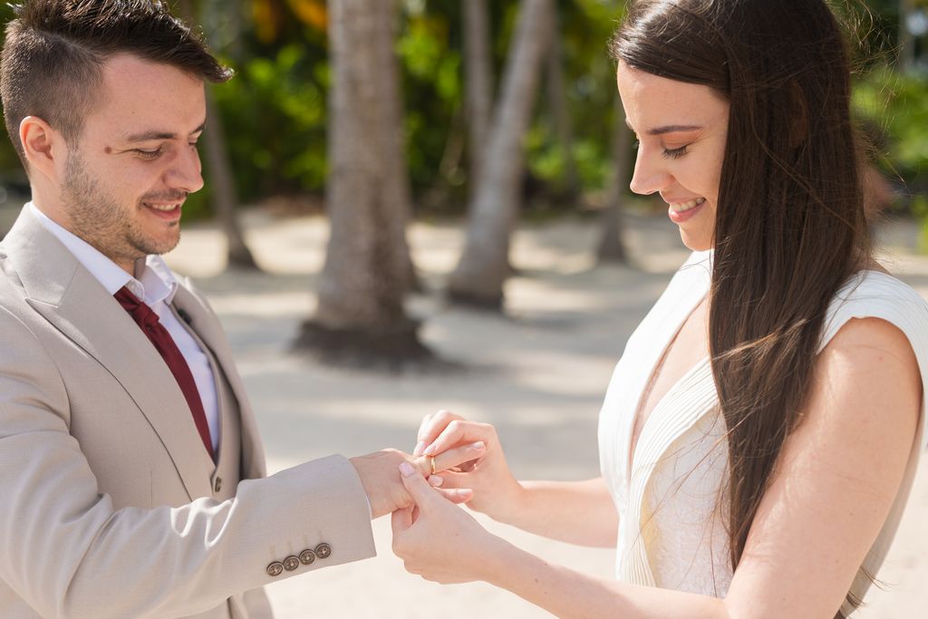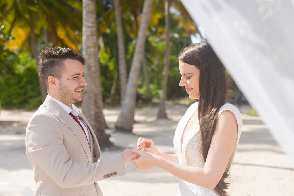 Шум волн стал естественным музыкальным сопровождением церемонии. Сначала Никола и Марсела произнесли искренние клятвы. Затем они обменялись кольцами как символом единства и верности. Именно поэтому интимная свадьба в Пунта-Кане получилась особенно глубокой и эмоциональной.