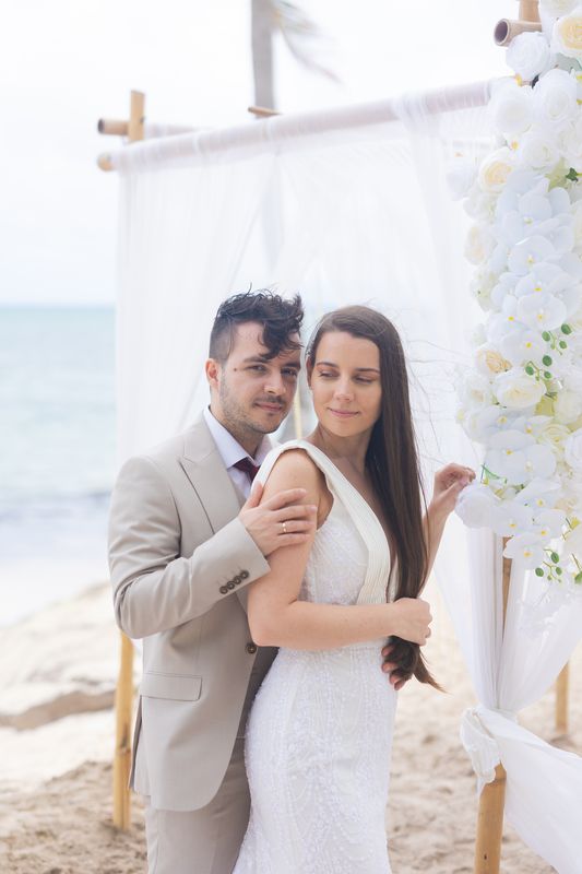 История Николы и Марселы доказывает, что свадьба для двоих может быть не менее торжественной, чем масштабное событие. Океан, пальмы и трогательные ритуалы сделали этот день особенным.