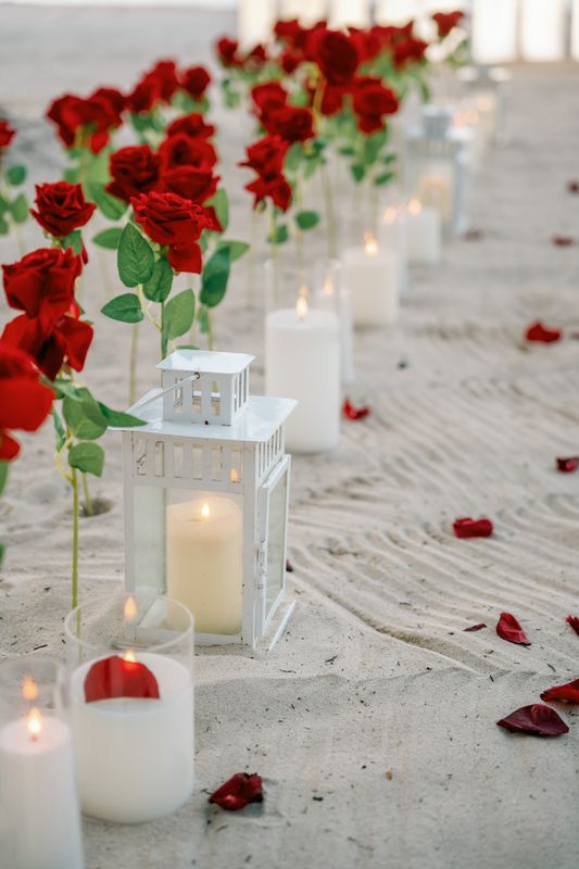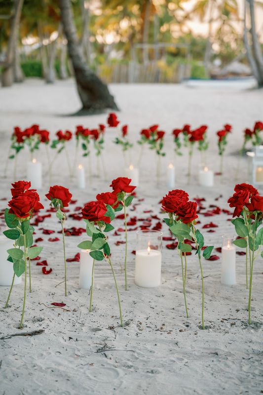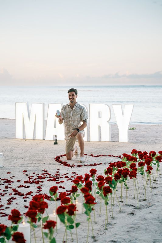 Когда они шли по пляжу, она внезапно заметила светящийся электрический знак с надписью MARRY ME. Дорожка из лепестков роз вела ее к знаку, а красные розы были аккуратно размещены по обе стороны от нее в песке. Перед сверкающими словами сердце, выложенное полностью из лепестков роз, добавляло впечатляющий штрих. Более того, каждая деталь была тщательно продумана, чтобы предложение было глубоко романтичным и незабываемым.
