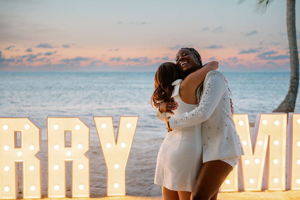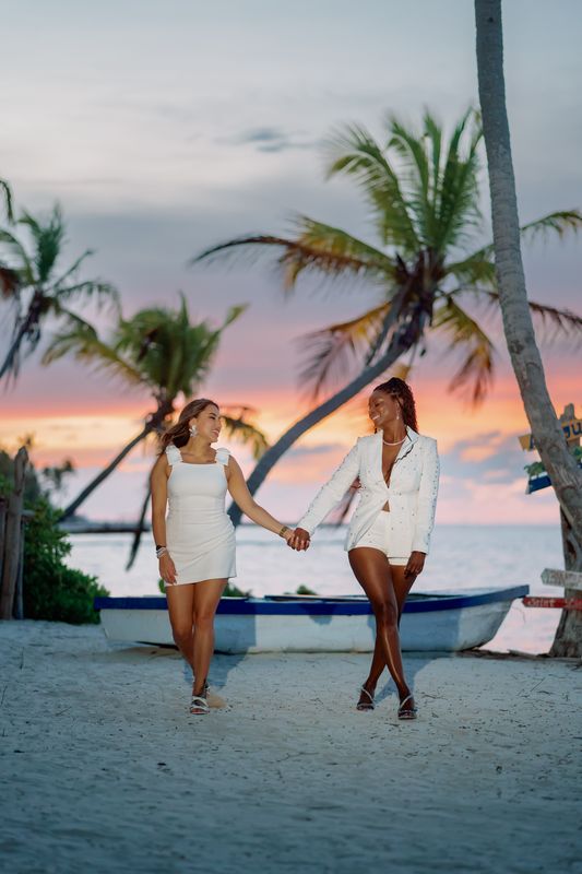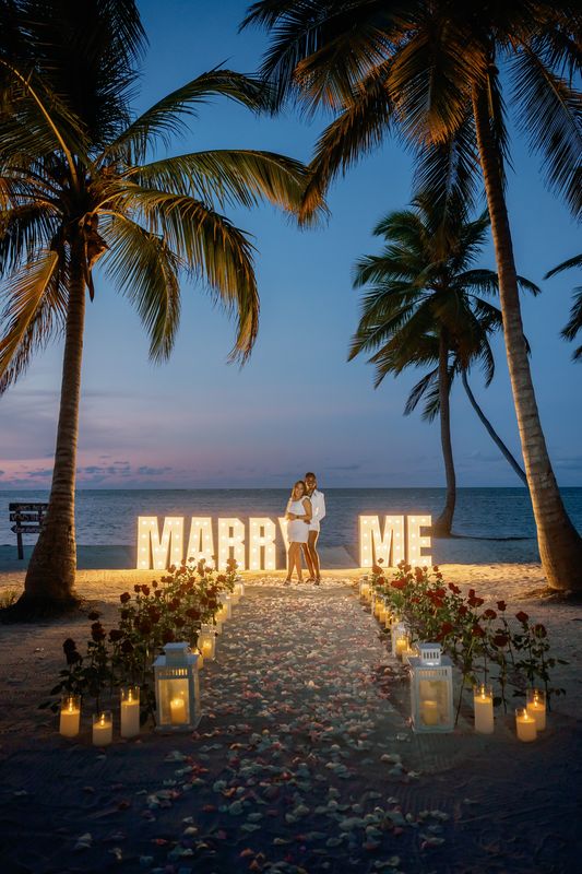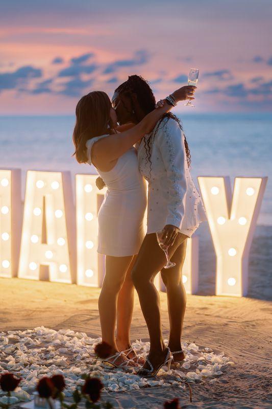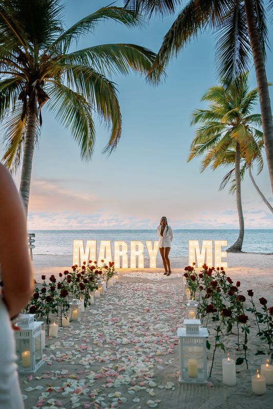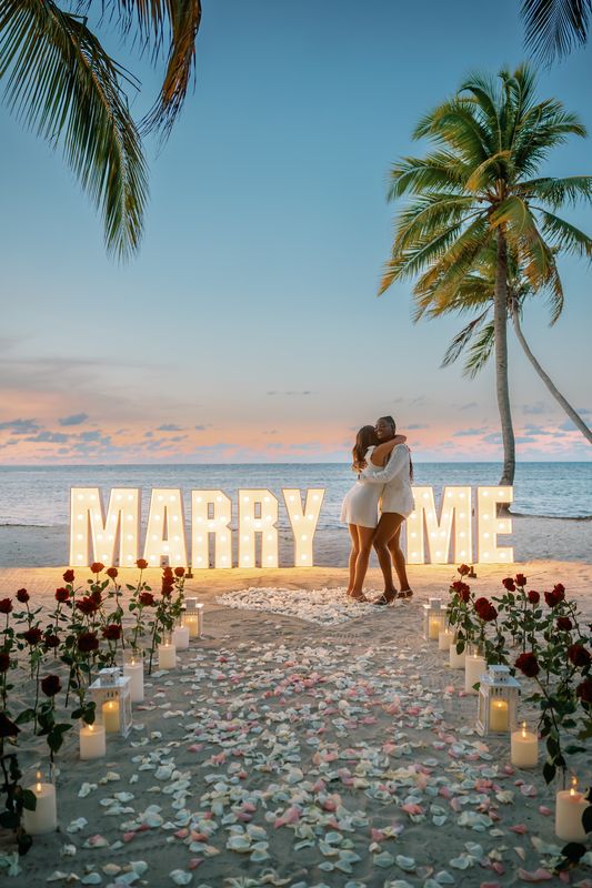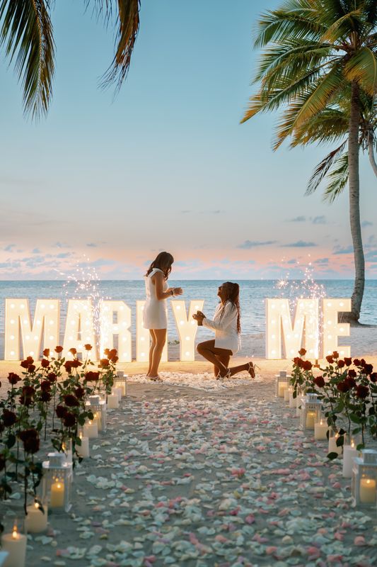 Планируете предложение руки и сердца однополой пары в Пунта-Кане? — это прекрасный способ отпраздновать любовь. На частном карибском пляже на закате одна девушка удивила свою партнёршу волшебной подготовкой. Мягкий песок был украшен розами, а романтическая дорожка из лепестков вела к светящейся надписи «MARRY ME». Большое сердце из лепестков роз завершало эту захватывающую сцену.