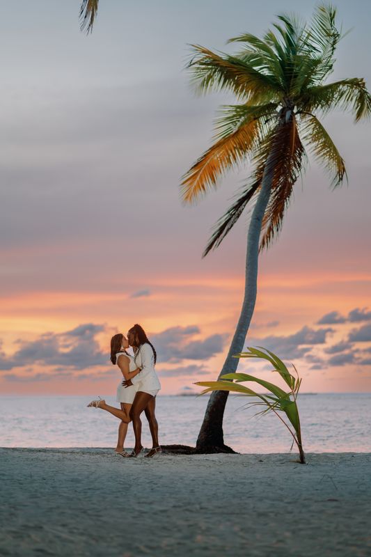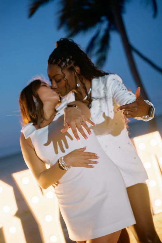 Предложение руки и сердца для однополой пары в Пунта-Кане – Частный карибский пляж на закате