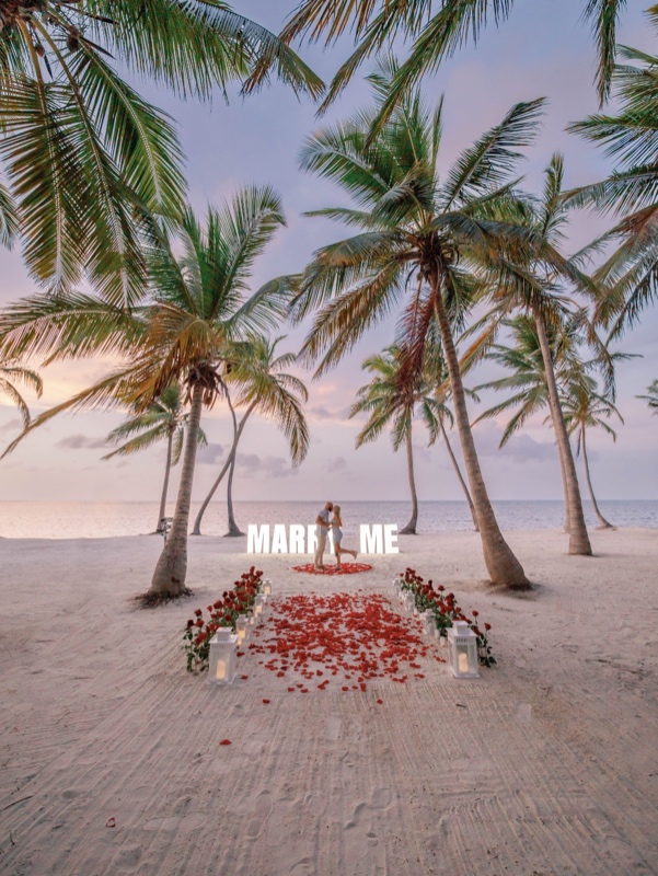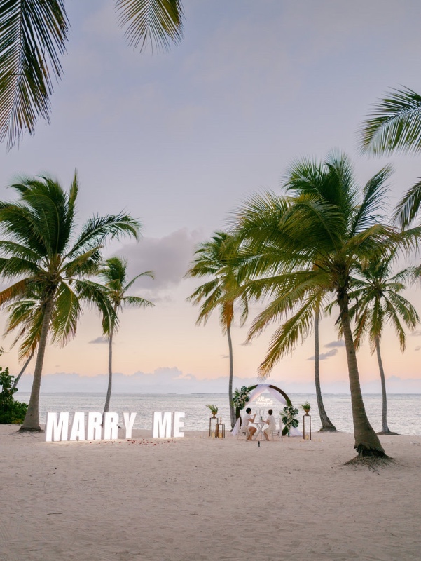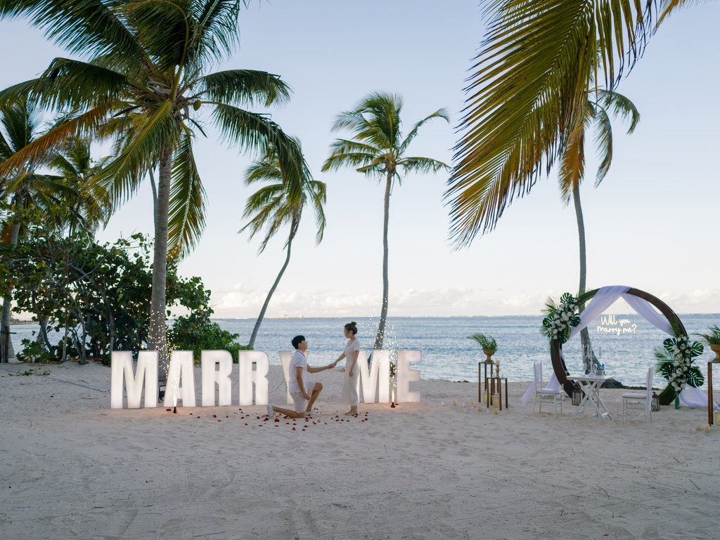 Наш пакет предложения «MARRY ME sign» превращает живописное место в холст, наполненный любовью. На фоне тропического пейзажа разворачивается история любви: вы задаёте вопрос и получаете ответ, создавая момент, обрамлённый красотой Пунта-Каны.