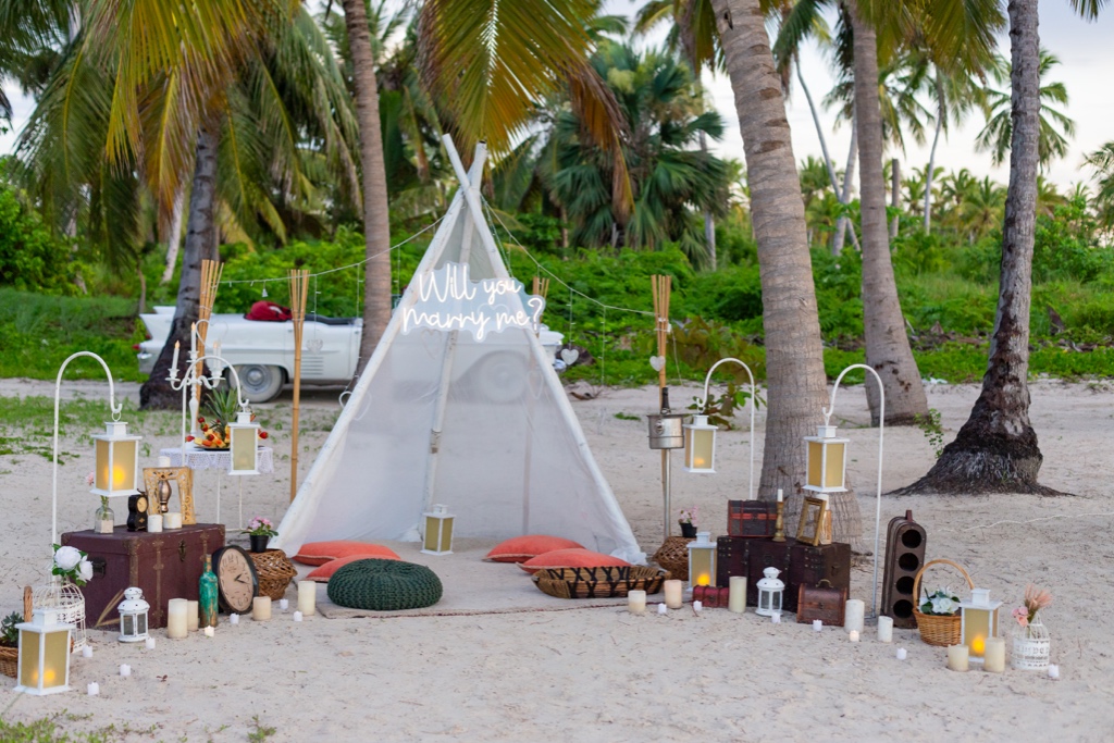 Также популярный пакет предложения руки и сердца в Пунта-Кане, Доминиканская Республика. Отправьтесь в путешествие очарования с нашим пакетом «Ночное романтическое предложение в вигваме». Под звездным небом, окружённые рустикальной атмосферой вигвама, ваша история любви выходит на первый план.