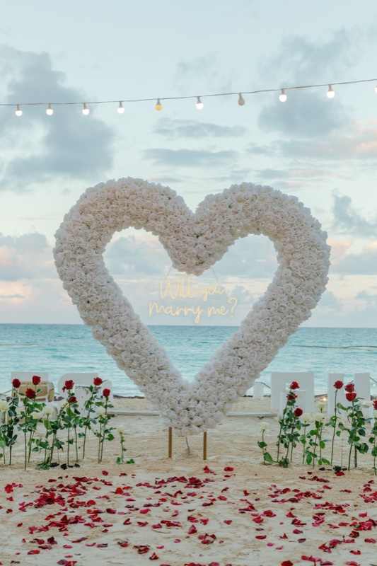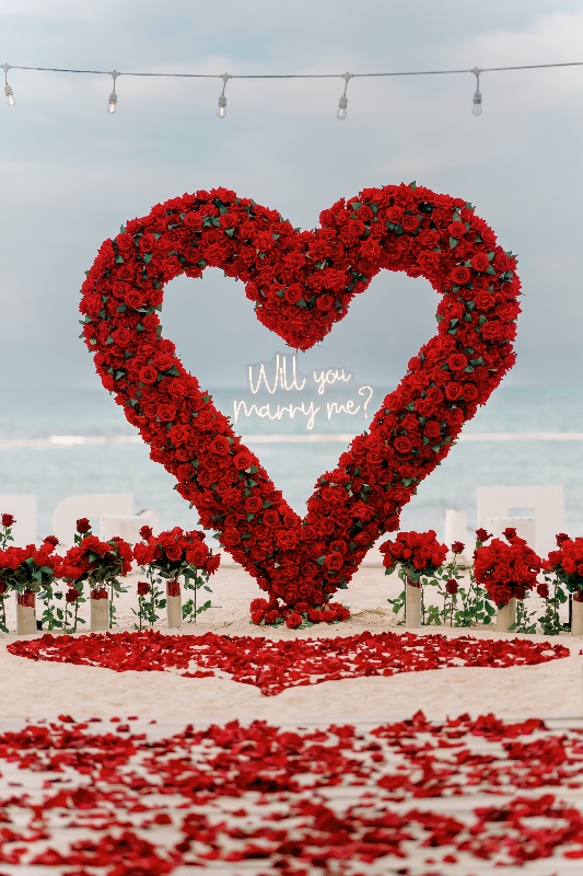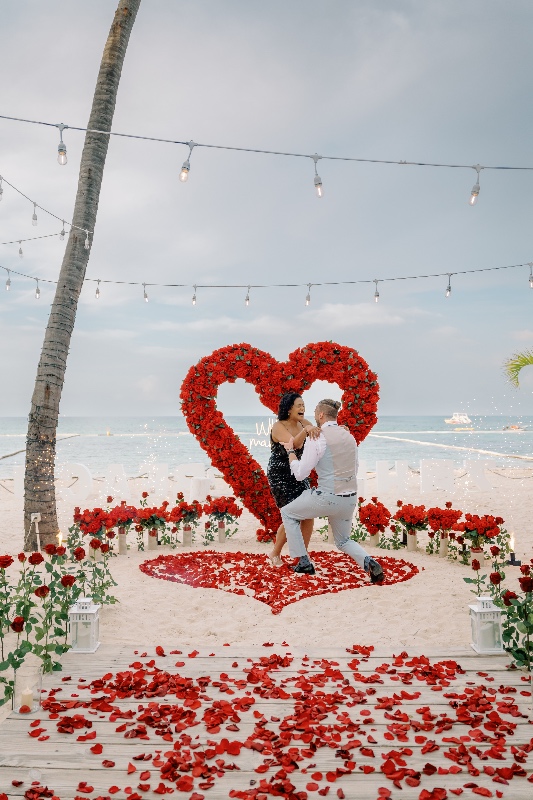 В живописном уголке Пунта-Каны, Доминиканская Республика, предложение руки и сердца разворачивалось под чарующим обаянием впечатляющей арки-сердца из белых роз. На фоне тропического великолепия эта тщательно продуманная цветочная инсталляция стала символом чистоты и вечной преданности. Сердцеобразная арка, украшенная безупречно белыми розами, стала захватывающим фокусом, объединяя природную красоту Пунта-Каны с элегантностью романтического жеста.