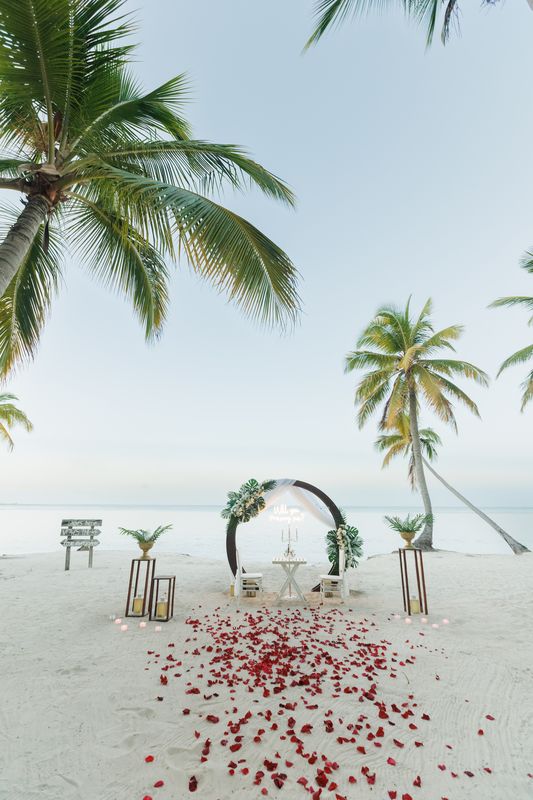 Предложение руки и сердца на закате в Пунта-Кане от Caribbean Wedding — это волшебный момент, наполненный романтикой, красотой и атмосферой Карибов. Представьте: солнце медленно опускается над бирюзовым океаном, а вы идёте по дорожке, усыпанной лепестками роз, к круглой арке, украшенной пальмовыми листьями и белыми цветами.