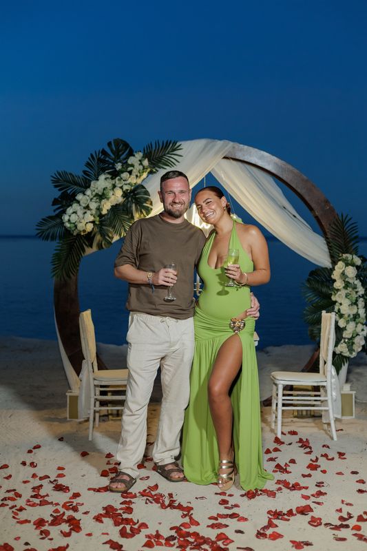 После заветного «да» наступает время праздновать. Влюблённые поднимают бокалы шампанского, чтобы отметить начало новой главы. Затем их ждёт ужин на берегу океана. Под звёздным небом, при мерцании свечей и звуках волн, романтика достигает своего пика. Этот вечер станет воспоминанием, к которому вы будете возвращаться снова и снова.
