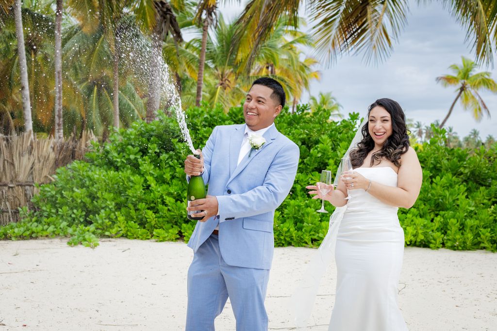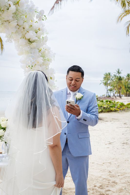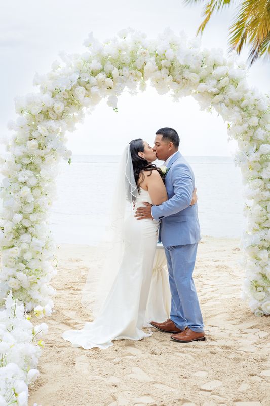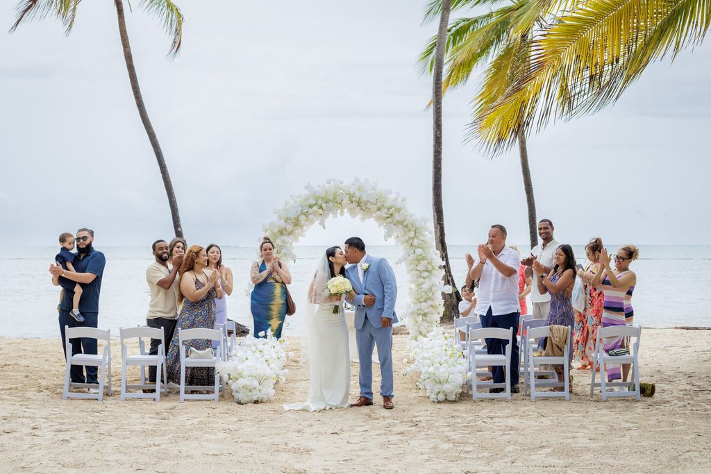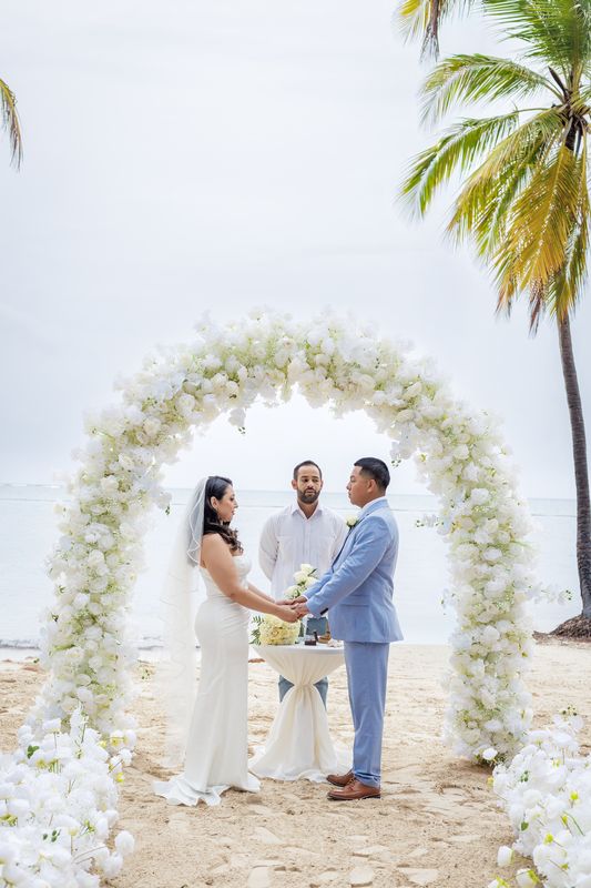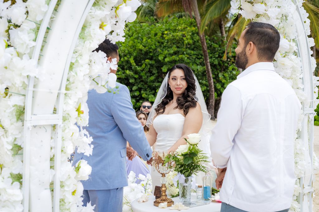 Прекрасная свадьба Yolin и Pedro на частном пляже была интимной, радостной и наполненной любовью. В окружении семьи и друзей они праздновали свой особенный день под звук океана и тёплый карибский бриз. Мягкий песок и бирюзовое море создали идеальную обстановку для этого незабываемого момента.