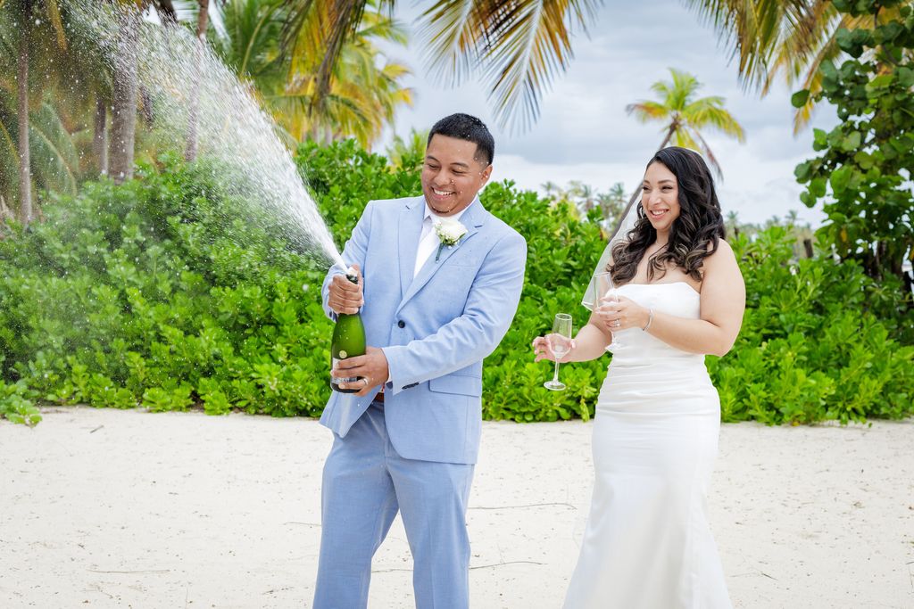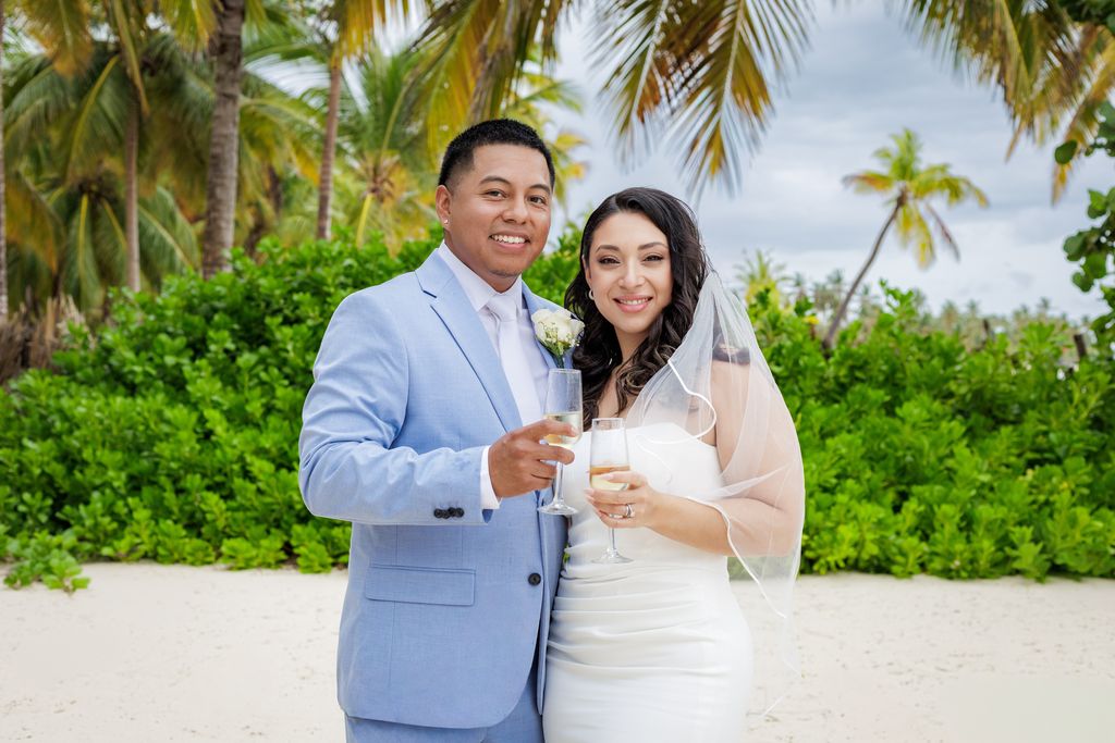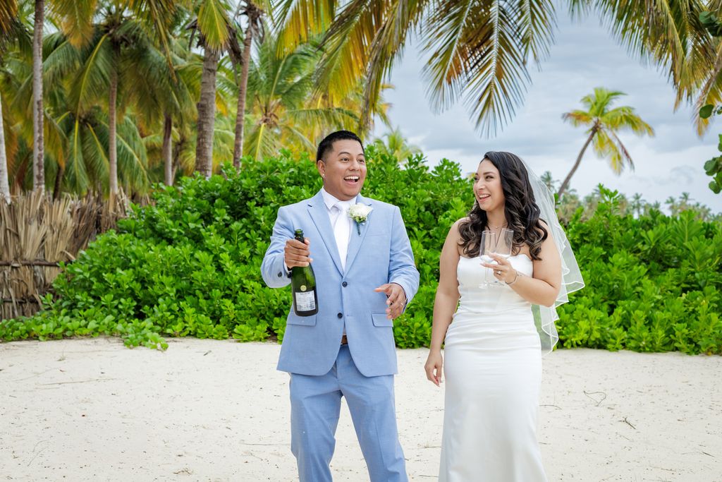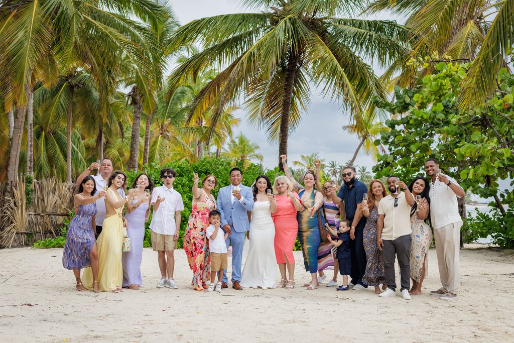 После церемонии пара подняла бокалы с шампанским. Их близкие окружили их смехом, объятиями и сердечными поздравлениями. Это была сцена, полная тепла и счастья. Кроме того, солнце медленно садилось над Карибским морем, добавляя золотистое сияние их идеальному дню.