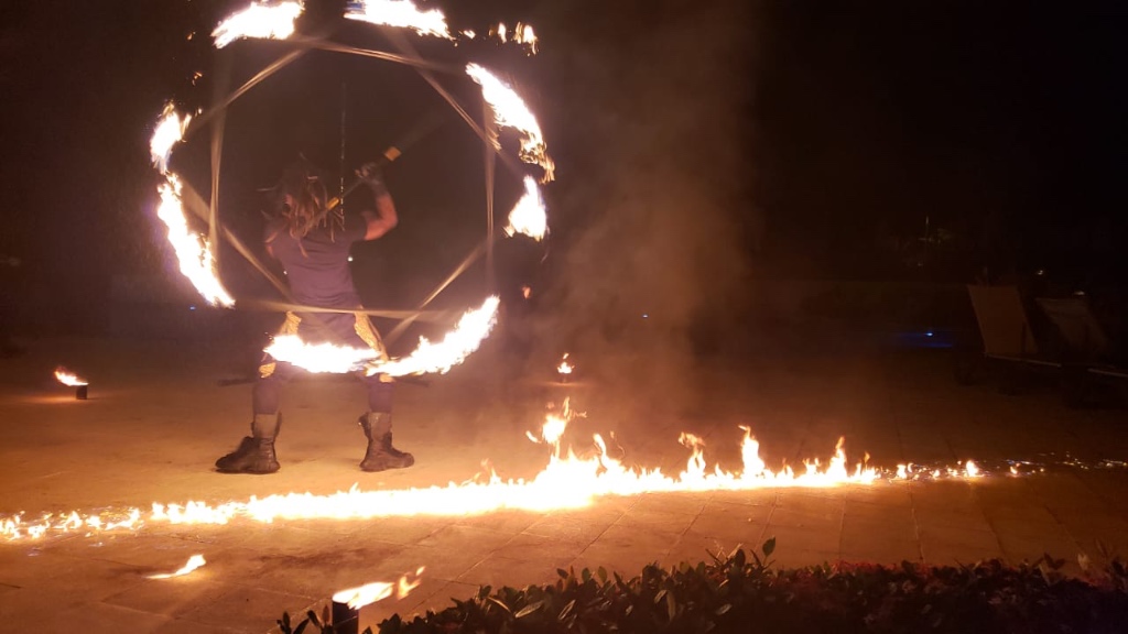 Наше огненное шоу — это захватывающее и впечатляющее представление мастерства и артистизма. Профессиональные артисты, владеющие техниками работы с огнем, исполняют эффектные номера с огненными пои, стаффами, хула-хупами и другими элементами. Шоу создаёт завораживающую атмосферу и выводит ваше мероприятие на новый уровень.