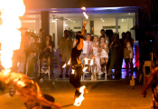 Наш бармен подарит лучшую развлекательную программу: во время танца он приготовит напиток для каждого гостя. Шоу проходит в двух частях: сначала работа с бутылками, шейкерами и льдом; затем — трюки с летающими бутылками и элементами огня. Дополнительно: прешоу с живой музыкой, саксофоном и перкуссией. Требования: звуковое оборудование, выбранные напитки и коктейльные бокалы.